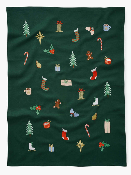 Rifle Paper Co. "Signs of the Season" Embroidered Tea Towel