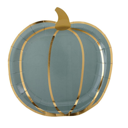 Slant Foil Shaped Paper Plates - Multicolor Pumpkins - 8ct