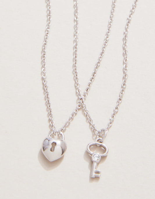Spartina 449 Sea La Vie 18" Necklace - Best Friends/Heart Key (2 piece set) - Silver