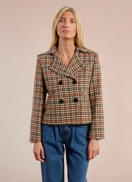 Molly Bracken Houndstooth Pattern Short Jacket-Brown
