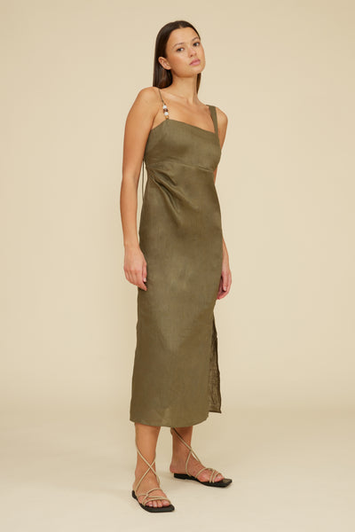Lucy Paris “Fallon” Bead Detail Dress - Olive