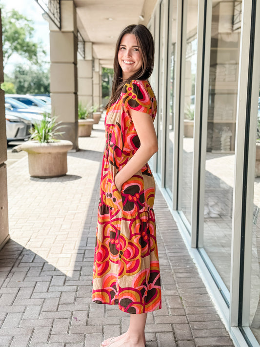 Uncle Frank Bold Floral Midi Dress-Red/Orange