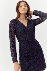 Adelyn Rae "Harmony" 3D Mesh Lace Dress-Navy