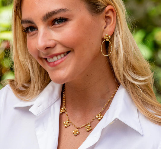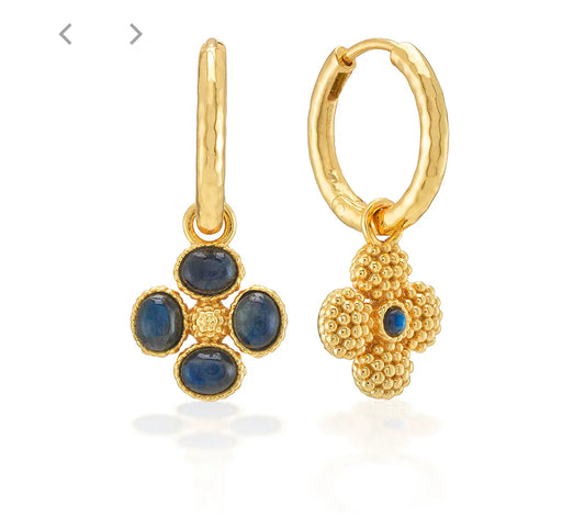 Capucine de Wulf “Berry Clover” Hoop Earrings w/Double-sided Charm-Gold/Blue Labradorite