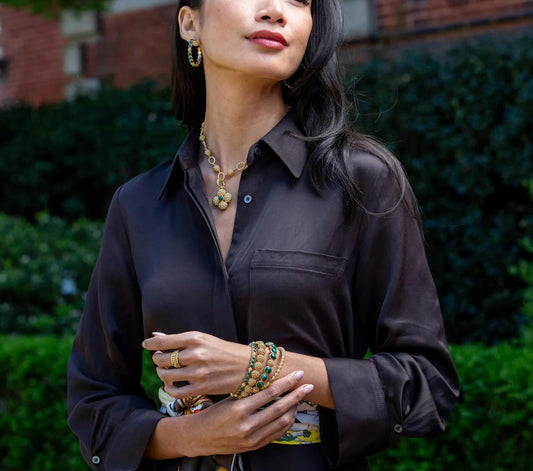 Capucine de Wulf “Berry Eternity” Petite Hinged Bangle-Gold/Malachite