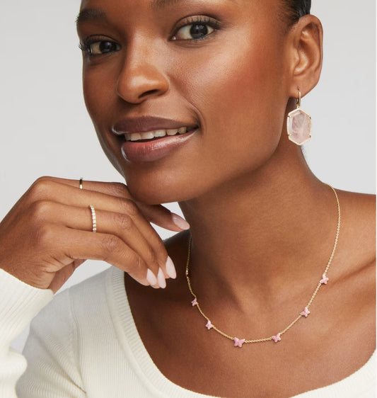 Kendra Scott Lillia Butterfly Enamel Delicate Necklace-Gold Pink Enamel
