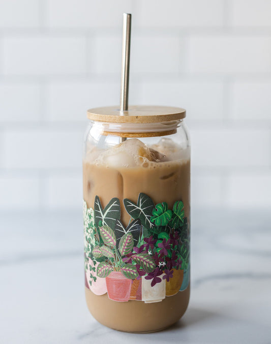 1 Canoe 2 "Houseplants" Glass Can with Straw