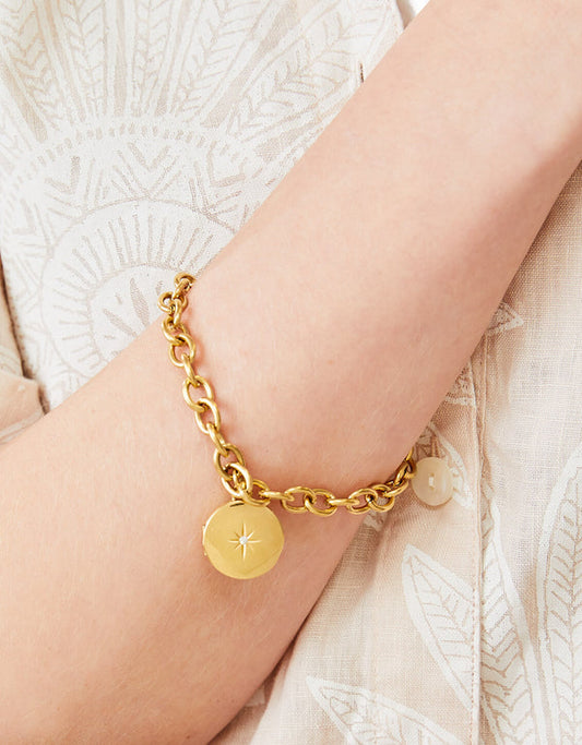 Spartina 449 Mini Round Locket Toggle Bracelet 7- 8"-Starburst