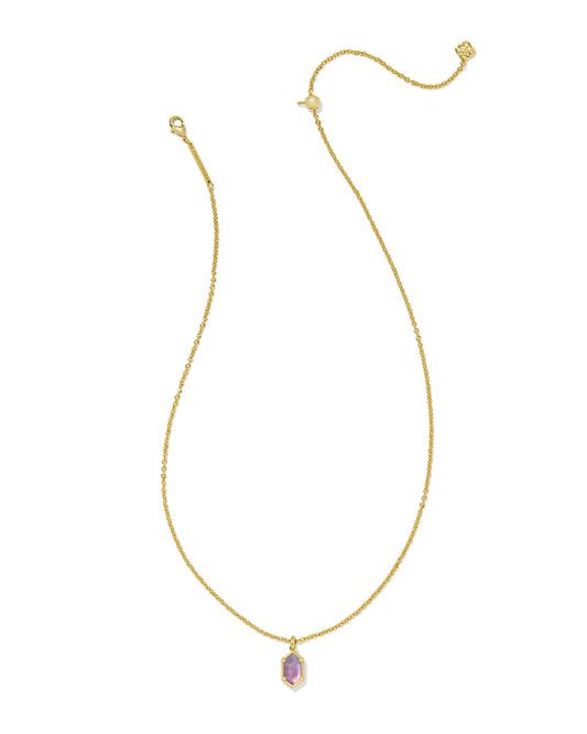 Kendra Scott Hallie Short Pendant Necklace-Gold Purple Watercolor Illusion