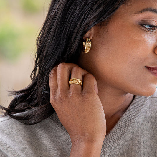 Capucine de Wulf “Berry” Classic Medium Hoop Earrings-Hammered Gold