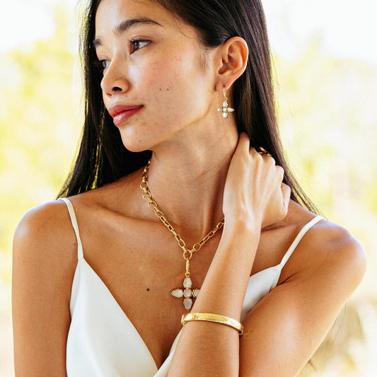 Kendra Scott Holland Statement Earrings - Gold White Crystal