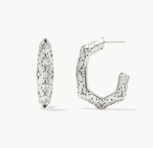 Kendra Scott Holland Hoop Earrings - Silver White Crystal