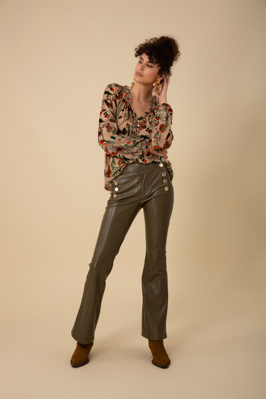 Hale Bob "Liana" L/S Velvet Burnout Top-Beige