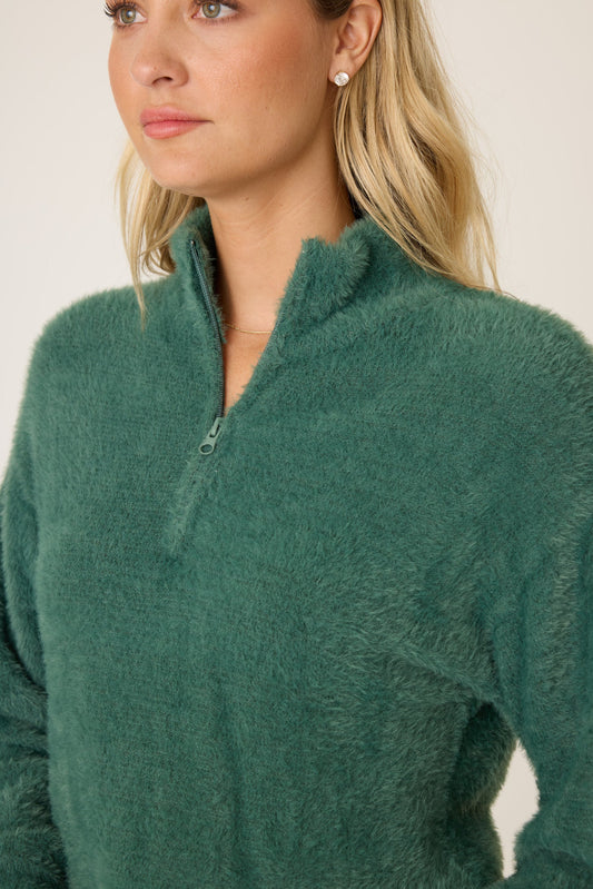 PJ Salvage "Campfire Cozy" Feather Knit Quarter Zip Sweater-Sage Leaf