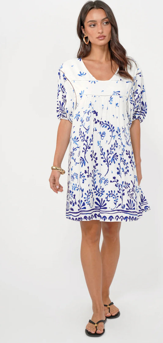Greylin “Nanci” Popover Mini Dress - Ivory/Blue