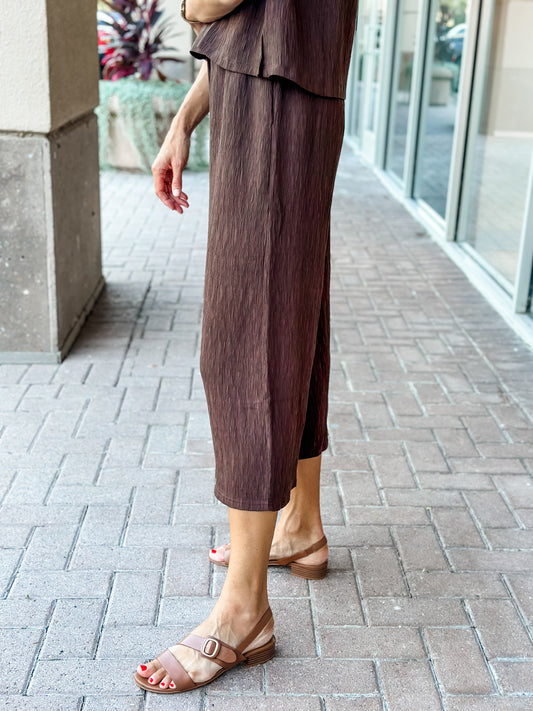 KLd "Marnie" Textured Crop Wide Leg Pant-Brown