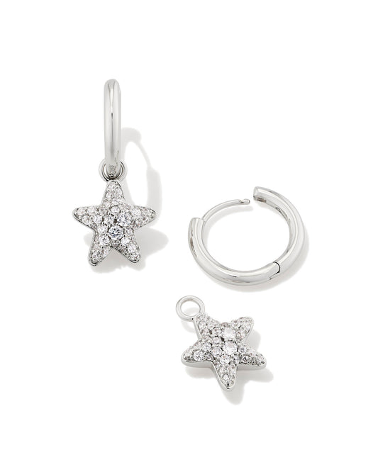 Kendra Scott Jae Star Pave Huggie- Silver White Crystal