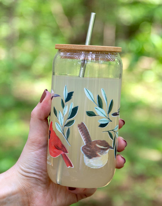 1 Canoe 2 "Feathered Friends" Glass Can with Straw