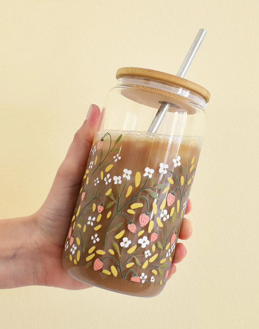 1 Canoe 2 "Strawberry Meadow" Glass Can with Straw