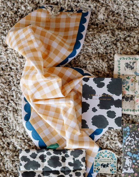 Paper Farm Press "Gold Gingham" Scalloped Tea Towel