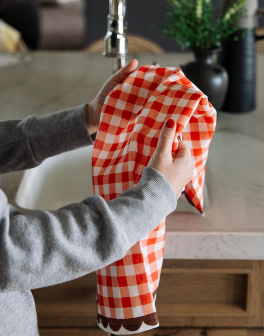 Paper Farm Press "Red Gingham" Scalloped Tea Towel