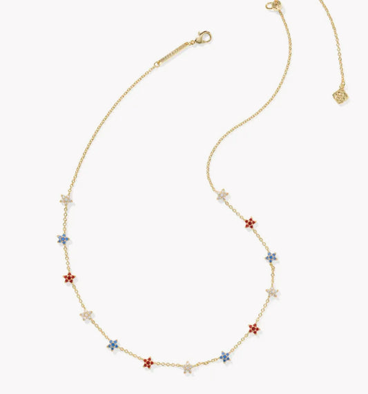 Kendra Scott Sierra Star Crystal Strand Necklace-Gold Red White Blue Mix