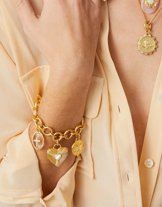 Spartina 449 Faith Hope Love Charm Bracelet 7.25"-8.5"