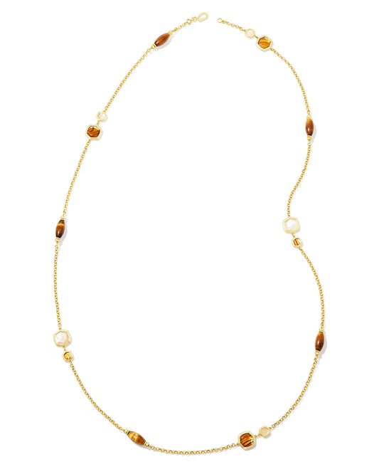 Kendra Scott Monica Long Strand Necklace-Gold Brown Mix
