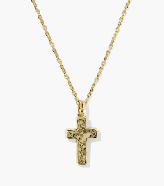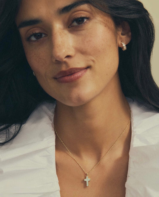 Kendra Scott Cross Pendant Necklace-Gold Matte Light Pink Diochroic