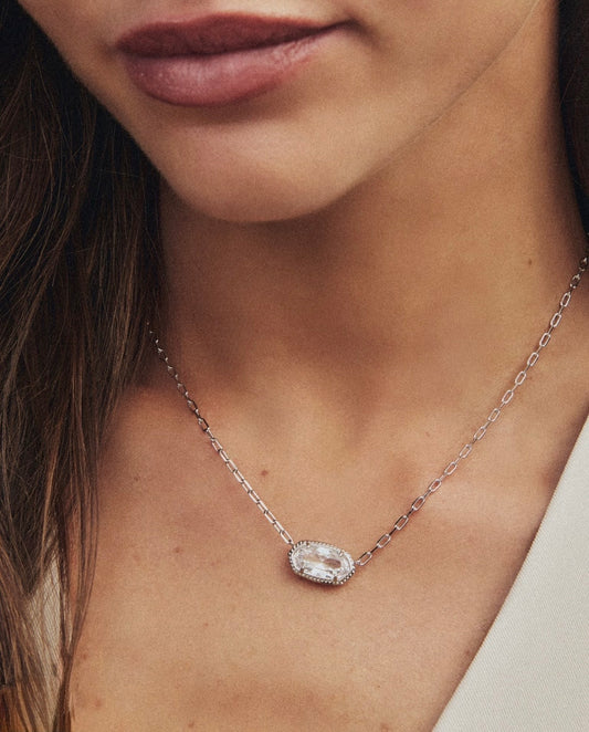 Kendra Scott Elisa Luxe Short Pendant Necklace-Silver White CZ