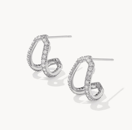 Kendra Scott Daphne Pavé Huggie Earring-Silver White CZ