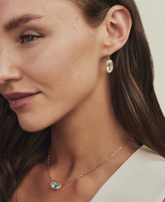 Kendra Scott Elisa Luxe Short Pendant Necklace-Gold Light Blue CZ