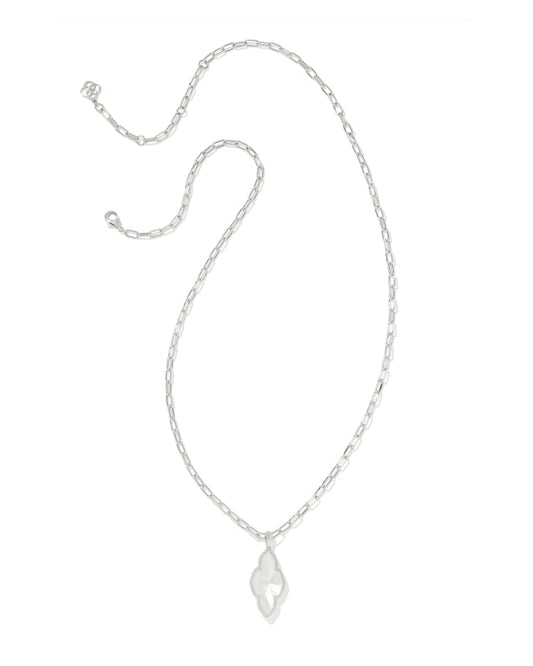 Kendra Scott Abbie Pave Frame Large Pendant Necklace - Silver Ivory Mother of Pearl