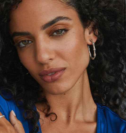 Kendra Scott Maura Bamboo Hoop Earring-Vintage Silver White Crystal