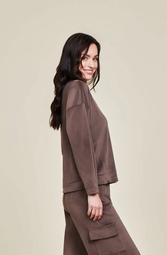 Barefoot Dreams LuxeChic Tucked Sweatshirt-Java