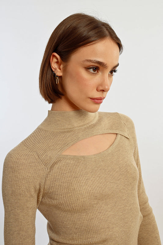 Lili Sidonio Keyhole Front Ribbed Sweater- Light Beige