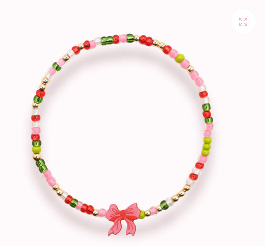 Beaded Blondes "Red Bow" Holiday Sprinkle Bracelet -Standard 6.75"
