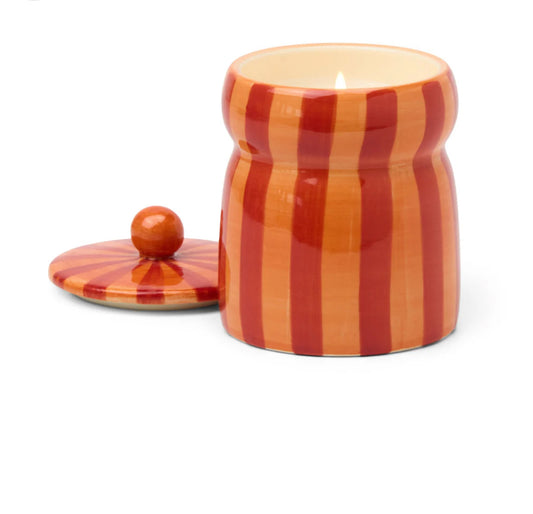 Paddywax Cabana Red/Coral Striped Candle 6.5oz-Spiced Apple