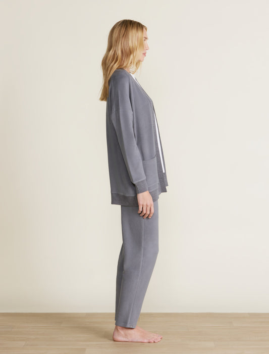 Barefoot Dreams Malibu Collection® Brushed Fleece Sweater Mix Cardigan-Coal