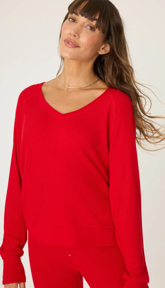 PJ Salvage Textured Essentials Long Sleeve Top-Red