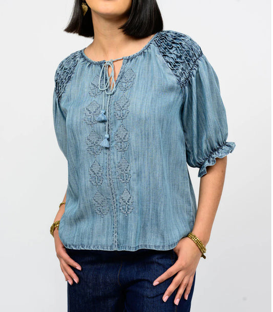 Ivy Jane Smocked Sleeve Top- Denim Blue