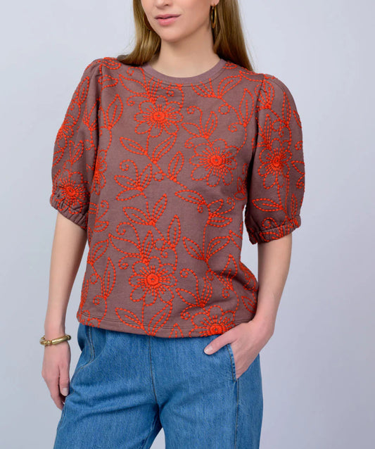 Ivy Jane "Floral Vines" Knit Top- Brown