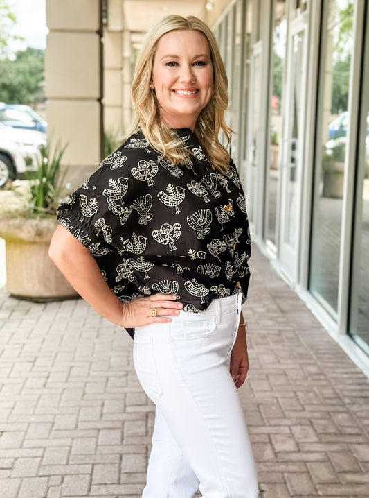 Ivy Jane Block Print Poncho Top - Black