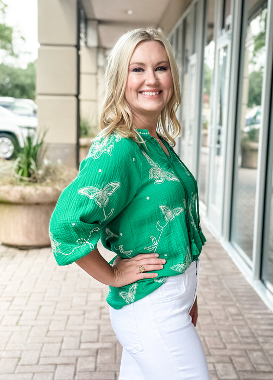 Ivy Jane "Tropical Floral" Popover Blouse- Pastel Yellow