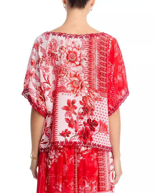 Farm Rio "Delhi" Tapestry Kimono Sleeve Bodysuit-Soft Pink Floral