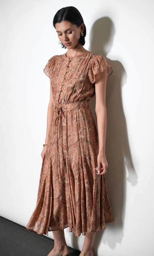 Greylin "Grace" Tie Belt Midi Dress-Terracotta