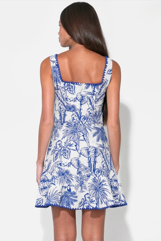 Adelyn Rae "Ximena" Square Neck Jacquard Mini Dress-Blue/White