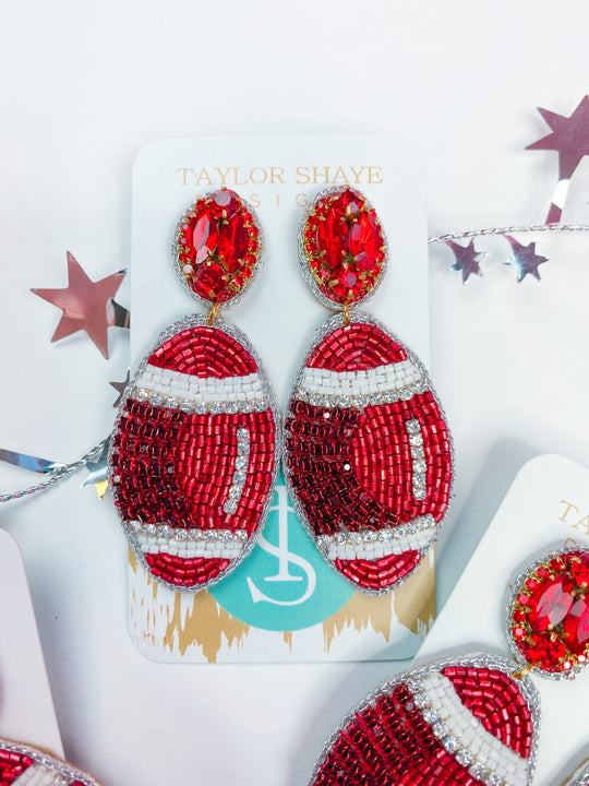 Beaded Red & White Football Earrings