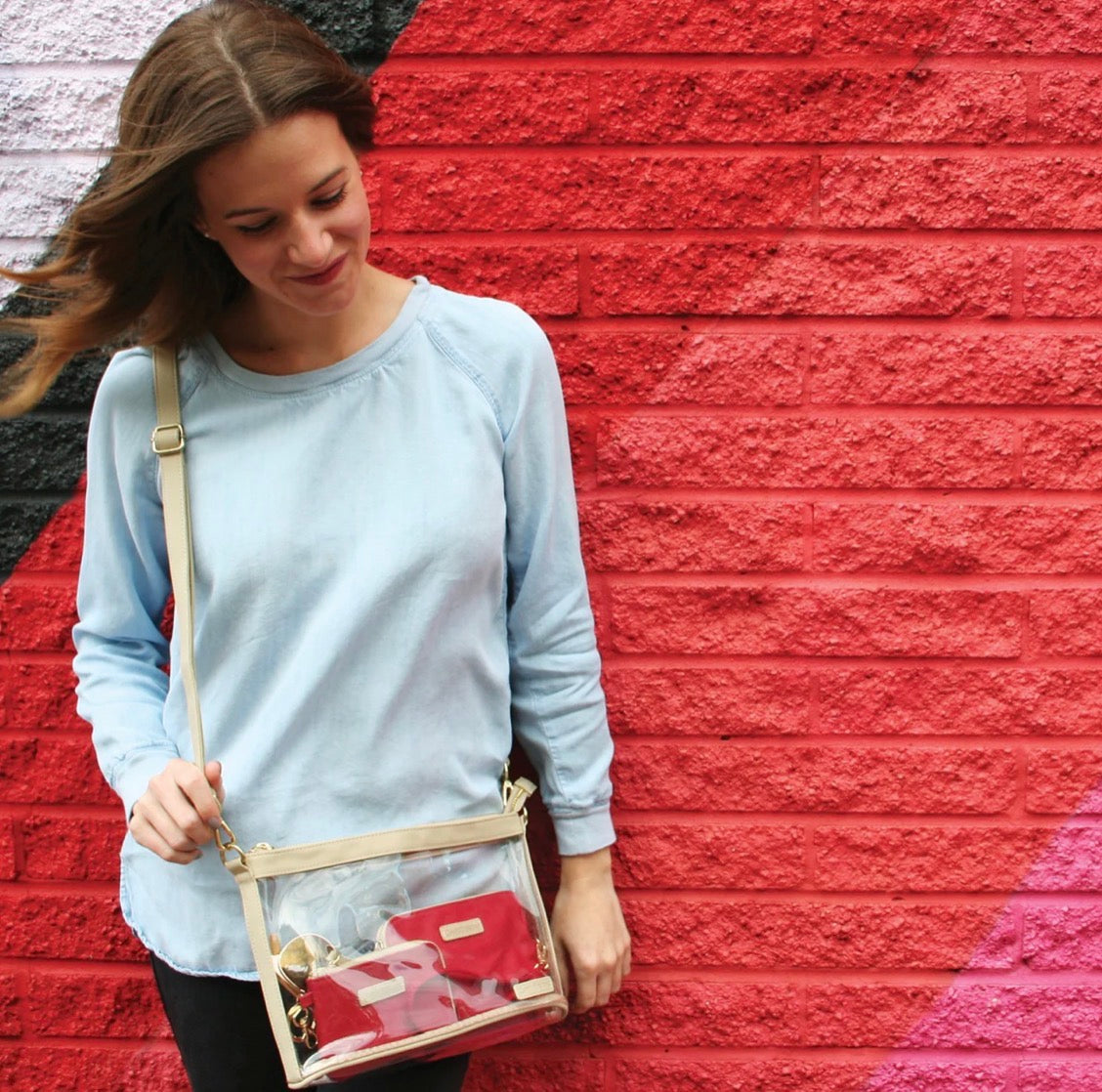 Capri Designs Small Crossbody-Clear with Tan/Gold