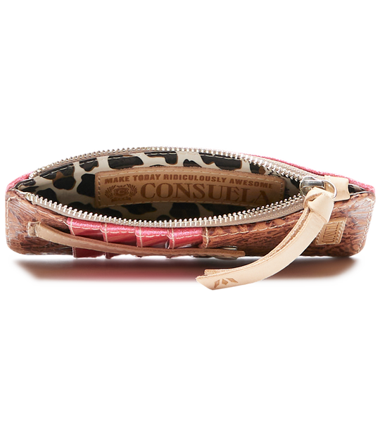 Keeping things light and easy, the card organizer is perfect for credit cards and folded bills. This wallet’s snap-closure and zipper compartment provides security while you take on the day.